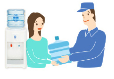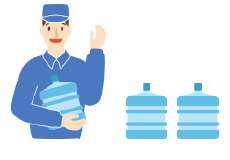 お客様のお手元までお届けします「お待たせしました、ウォーターネットです。」笑顔と共に「ウォーターネット」をお持ちします。4人家族が飲む平均的な水の量は3~4本です。(12リットルボトル)